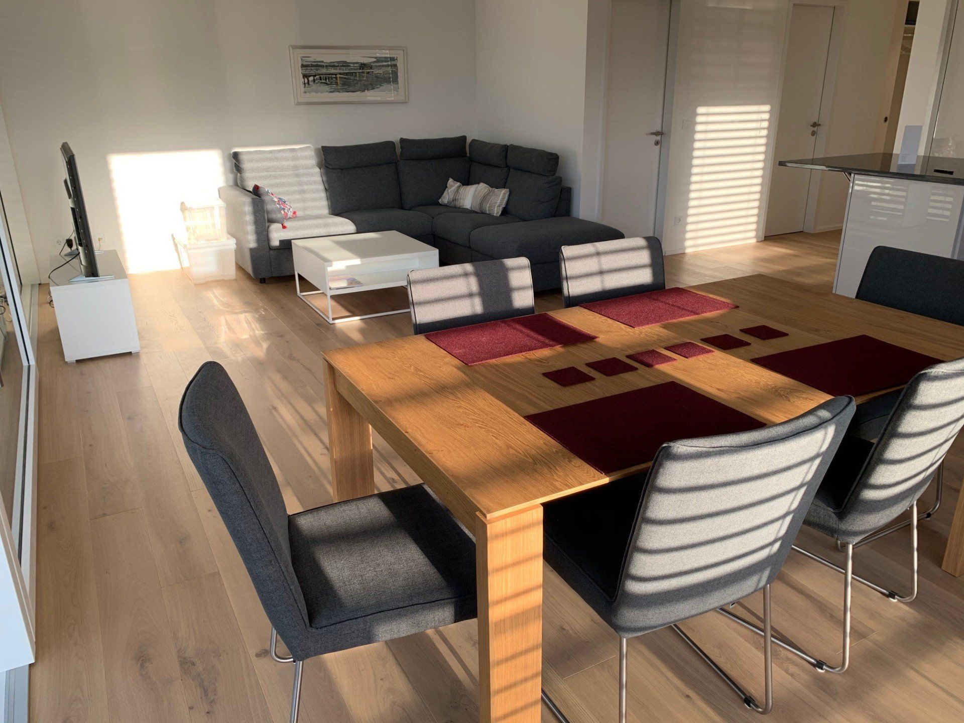 Die Wohnung hat 3 Zimmer und einen sehr großen Balkon, der nach Süden ausgerichtet ist und einen schönen Seeblick bietet. Es lohnt sich, hier abends einen auf dem großen Süd Balkon einen Absacker zu genießen! Genießt den Ausblick auf den Bodensee und die Berge auf der anderen Seite des Sees ...